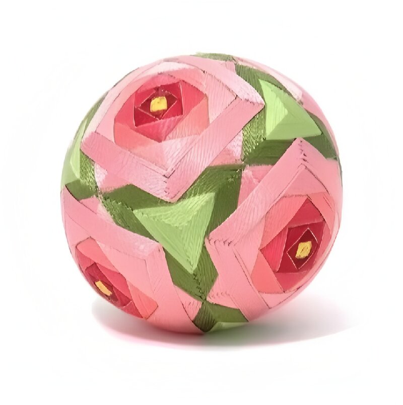 Featuring vibrant pink floral patterns nestled among fresh green leaves, this Temari ball is full of life and vigor, reminiscent of blooming spring tulips.